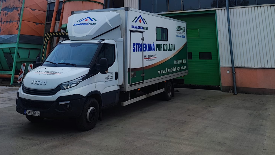 Okrem kvalitného skladovania je rovnako dôležitá aj správna preprava materiálu. Na zabezpečenie optimálnych podmienok pre Kanadskú penu pri preprave používame izotermickú nadstavbu na našich vozidlách. Týmto spôsobom sa počas celej doby prepravy zabezpečí rovnaká teplota, ktorá zabraňuje poškodeniu materiálu. Mnohé konkurenčné firmy prepravujú materiál v nezateplených dodávkach, čo nie je správne, pretože pena je veľmi citlivá na teplotné výkyvy.